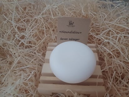 En français : Ce savon ménager est composé uniquement d’huile de coco.